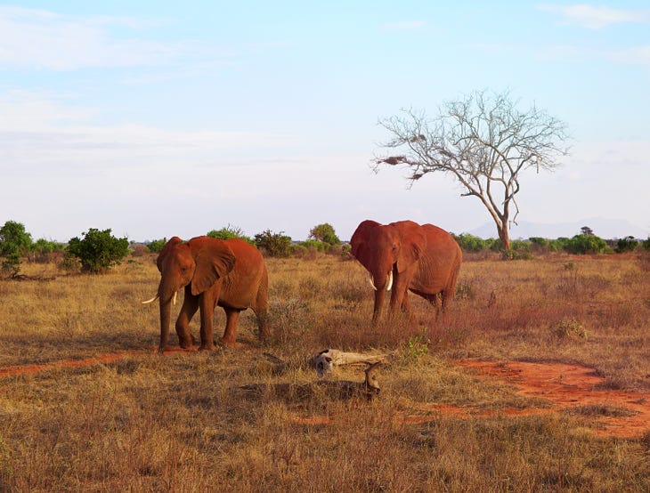 The savannah ecosystem in Tsavo West comprises scrublands, woodlands, open grasslands and rocky ridges providing stunning views. Tsavo West is known for the beautiful rugged wilderness. Under parched lava rocks, Mzima Springs comprises approximately fifty million gallons of crystal clear water flowing to the Shitani lava flows. Shitani means „devil“ in Swaheli. This vast expanse of folded black lava spreads for 50 sq km across the savannah, also being home to predators. Tsavo West offers some of the most magnificent game viewing in the world including elephants, rhinos, hippos, lions, cheetahs, leopards, buffalos, as well as diverse bird species.